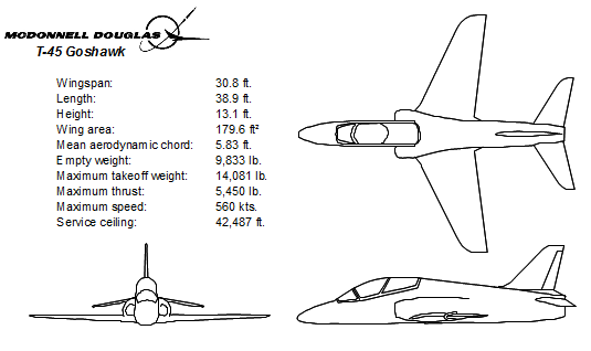 To validate Multi-Sim, we used data from the flight test of a U.S. Navy T-45 Goshawk training aircraft. The T-45 is a two-seat, tandem, single-engine jet. (Click the image at right to enlarge.) It began service with the Navy in the early 1990s and is in use today. Prior to its being accepted by the Navy for use aboard aircraft carriers, it underwent extensive flight testing to evaluate its flight dynamics and flying qualities.